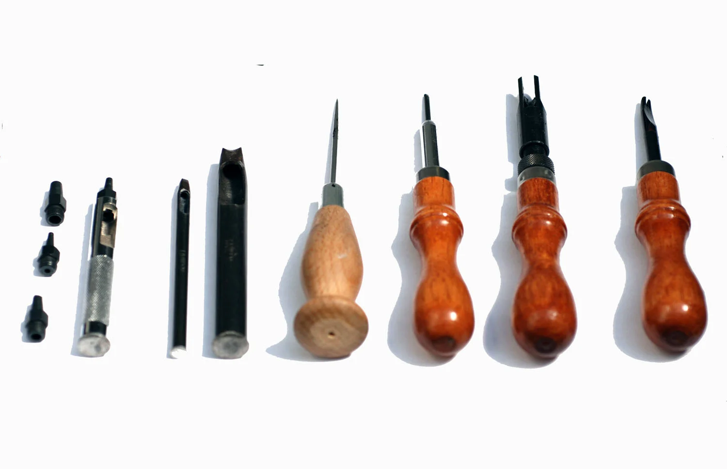 Basic skills covered include cutting, edging, gluing, hole punching, adding cuff fixings.